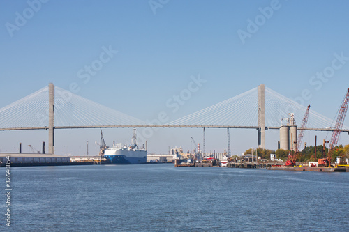 © dbvirago, Fototapeta premium Industrial Area Under a Suspension Bridge