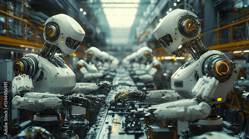 Fototapeta premium Industrial Automation: Advanced AI Robotics in Modern Manufacturing and Production Line Innovation