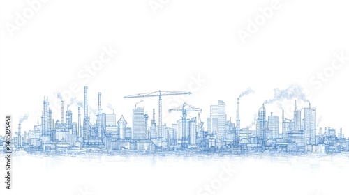 Fototapeta premium Industrial city blueprint sketch, horizontal format, background use
