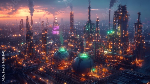 Fototapeta premium Industrial Cityscape at Dusk Generative AI