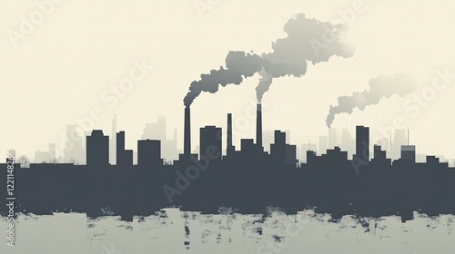 Naklejka premium Industrial Cityscape Skyline Pollution Smoke Stacks
