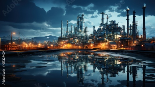 Obraz premium Industrial Complex at Night