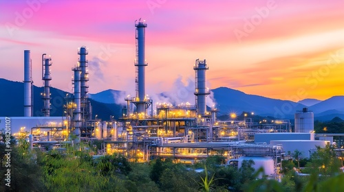 Fototapeta premium Industrial complex at sunset.