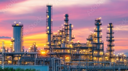 Fototapeta premium Industrial Complex at Sunset with Vibrant Colors