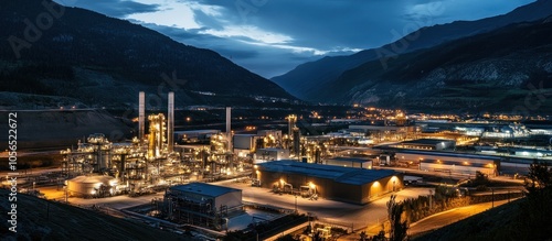 © BISMILAH, Obraz premium Industrial Complex in Mountain Valley