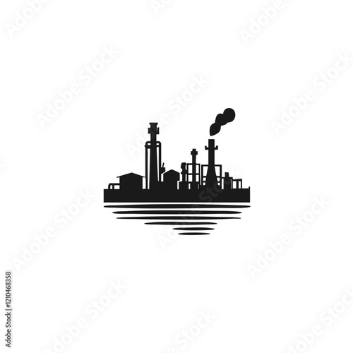 Obraz premium Industrial Complex Waterfront Silhouette. Vector Image
