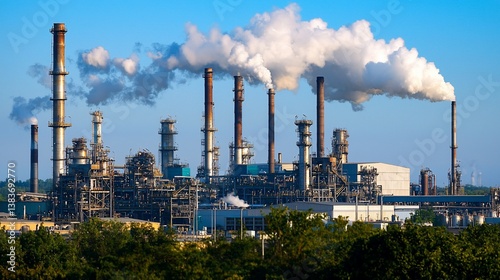 © Lakshmi, Obraz premium Industrial complex with smoke stacks