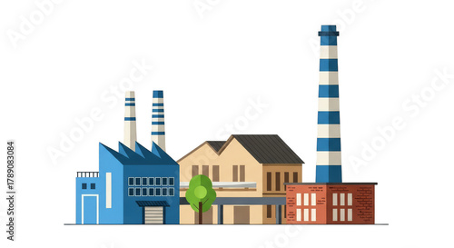 Obraz premium Industrial complex with striped chimneys