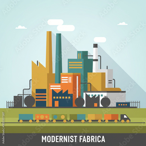 © Rajamurthy, Obraz premium Industrial Concrete Batching Plant and Aggregate Processing Facility with Storage Silos and Conveyor Belts at Sunset with Dramatic Sunburst Flare