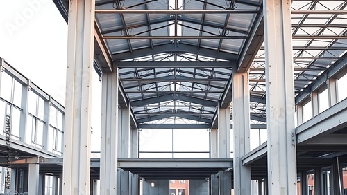 Obraz premium Industrial construction site with steel beams and columns, highlighting...