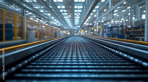 Fototapeta premium Industrial conveyor belt system in a modern factory.