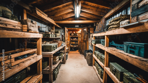 Fototapeta premium Industrial dark room in the building, ammunition boxes, dirty, deserted and...
