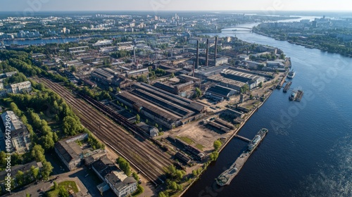 © songpol152, Fototapeta premium Industrial development overview urban area aerial photography modern environment wide angle economic growth