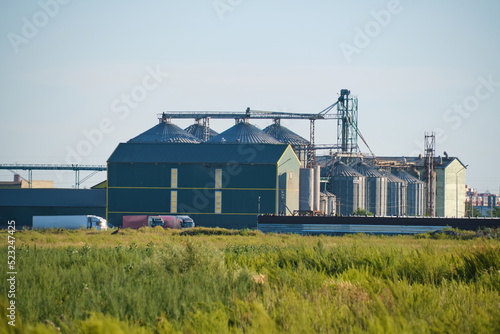 Obraz premium Industrial elevator with grain storage hopper.