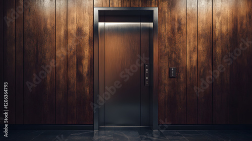 © roysah, Obraz premium Industrial elevator with sleek metallic design and subtle lighting.