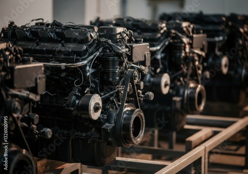 © Aliaksandr Barouski, Fototapeta premium Industrial engines lined up in a manufacturing facility for assembly