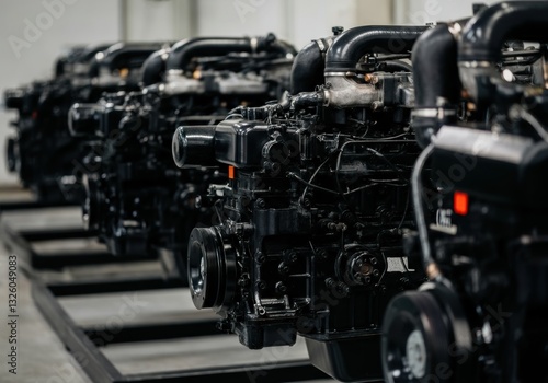© Aliaksandr Barouski, Fototapeta premium Industrial engines lined up in a modern manufacturing facility