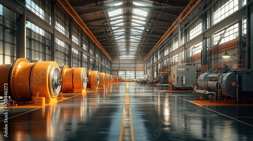 Fototapeta premium Industrial facility with large machinery and bright lighting.