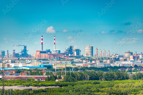 © Weiming, Obraz premium Industrial factories and nearby homes in Shanghai, China