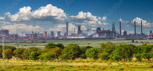 Fototapeta premium Industrial factory near Johannesburg polluting the environment, South Africa, furnace with smoke