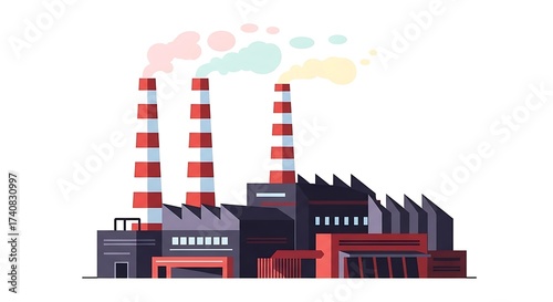 © Sujabat, Obraz premium Industrial factory with smoking chimneys isolated on white background