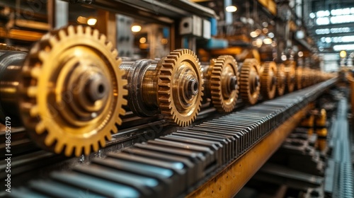 © aby.std, Fototapeta premium Industrial gears on a conveyor belt