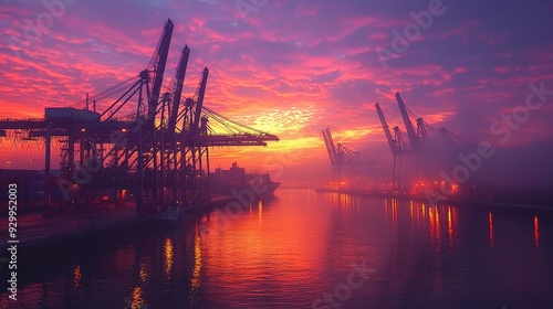 © mediastok.ai, Obraz premium Industrial Harbor at Sunset