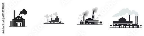 Fototapeta premium Industrial icons, smoke, pollution isolated on white or transparent