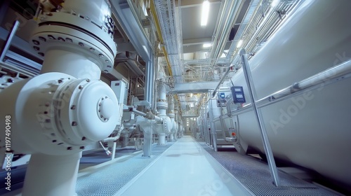 Fototapeta premium Industrial Interior of Modern Factory with Pipe Systems and Equipment