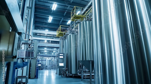 Fototapeta premium Industrial Interior with Large Stainless Steel Tanks
