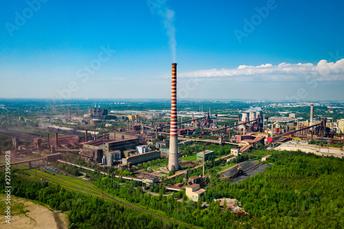 Fototapeta premium Industrial landscape with heavy pollution produced by a large factory