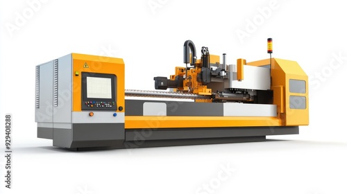 © djatinako, Fototapeta premium Industrial Laser Cutting Machine with Automated Robotic Arm and Control Panel