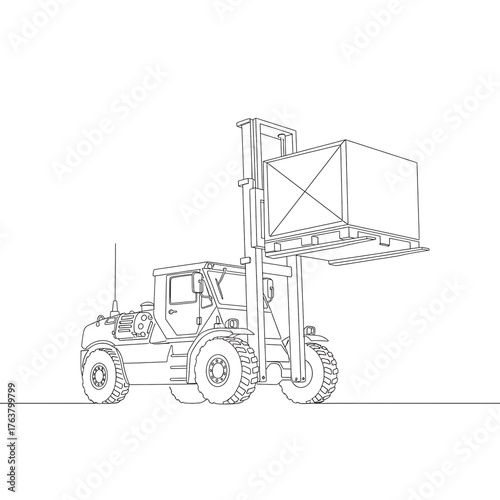 © waheed, Fototapeta premium Industrial Lift: A precision-drawn illustration of a robust industrial forklift, its forks engaged in the methodical transport of a sizable cargo box.