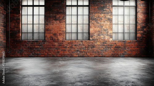 © Vibrant Visions Pixe, Naklejka premium Industrial Loft Interior With Three Windows And Concrete Floor