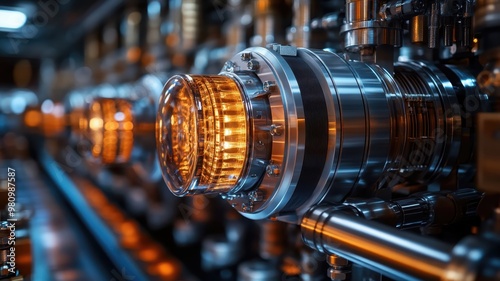 Fototapeta premium Industrial Machine Closeup With Glowing Light