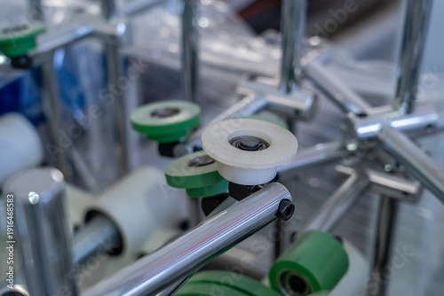 Fototapeta premium Industrial machine detail with rollers and metal elements