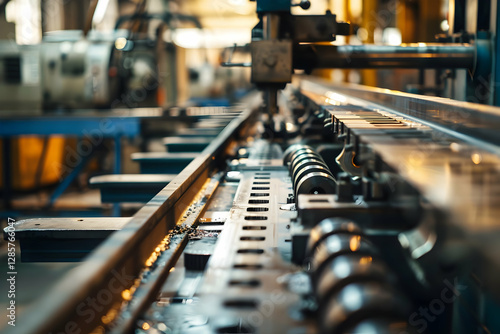 Fototapeta premium Industrial machinery in a factory setting, showcasing precision engineering...