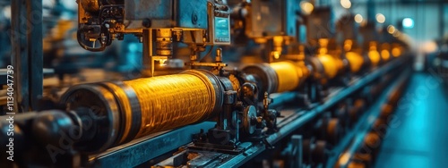 Fototapeta premium Industrial machinery operation in factory setting manufacturing process high-tech environment close-up view efficiency concept