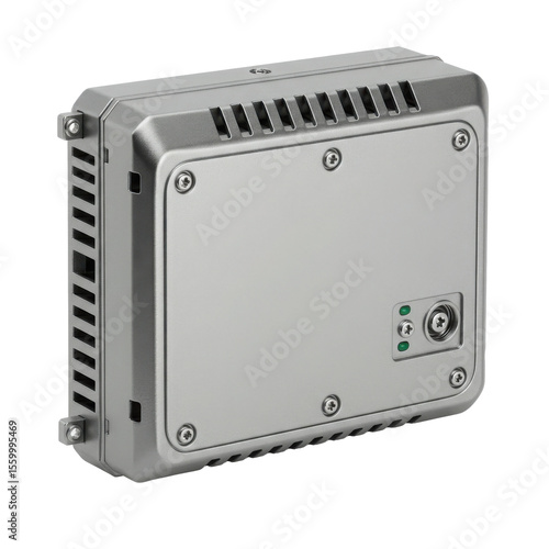 Fototapeta premium Industrial metal enclosure with vents and LED indicators