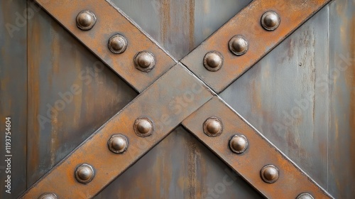 Fototapeta premium Industrial metal surface with rusted rivets and crossed steel beams