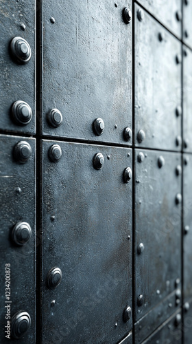 Fototapeta premium Industrial Metal Texture Dark Steel Panels Rivets Background