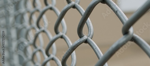 Fototapeta premium Industrial park Metal chain-link fence for security