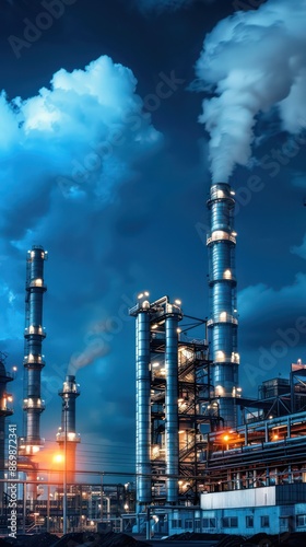 © Matthew, Obraz premium Industrial plant with tall chimneys and smoke set against a dramatic sky.