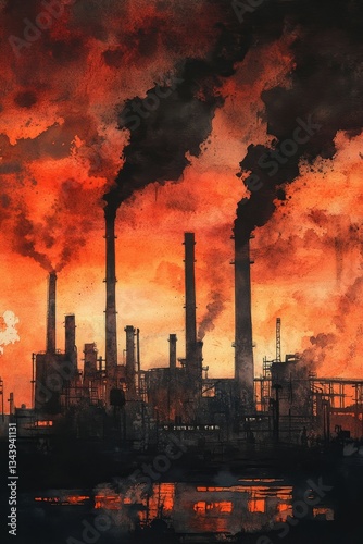 Obraz premium Industrial pollution fills the sky with smoke.