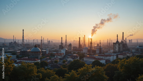 © NIC, Fototapeta premium Industrial Power Plant At Sunset