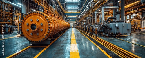 © Georgii, Obraz premium Industrial power plant with large horizontal electric turbines