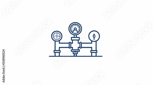© Surachate, Fototapeta premium Industrial Pressure Gauge and Valve System with Three Connections