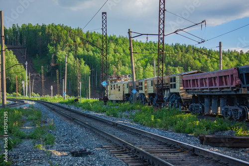 © Roma Mashinist, Fototapeta premium Industrial railway of the Kachkanar mining and processing plant. Промышленная железная дорога Качканарского горно-обогатительного комбината.