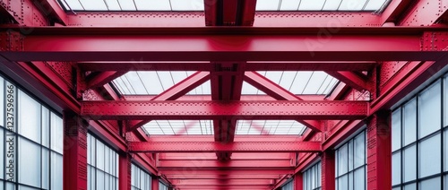 Fototapeta premium Industrial Red Steel Beams and Skylight Structure
