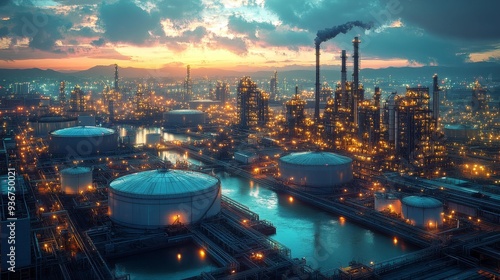 © studio clever, Fototapeta premium Industrial refinery at dusk - generative ai